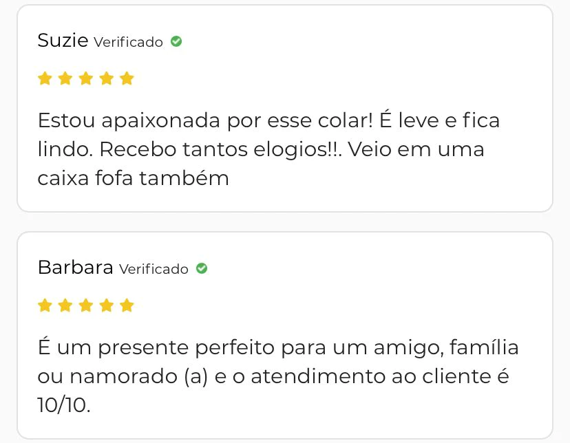 O colar é enviado em uma linda caixa de presente, pronta para surpreender quem você ama.
