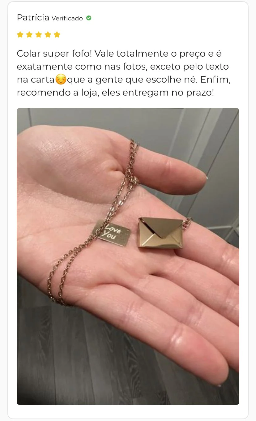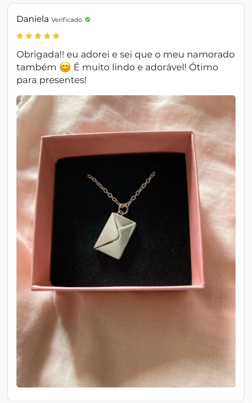 Adquira agora o Colar Envelope do Amor e faça quem você ama se sentir ainda mais especial!